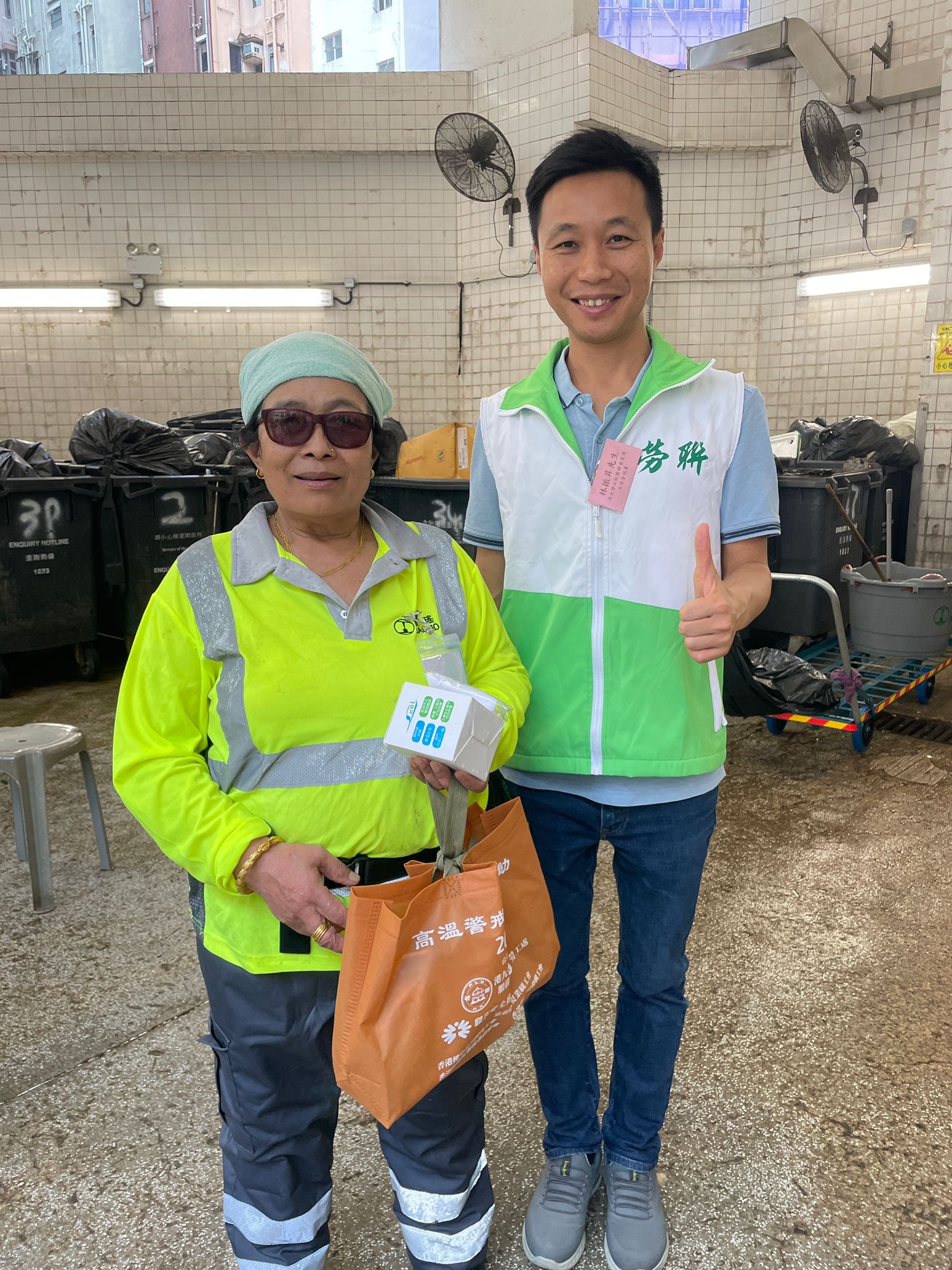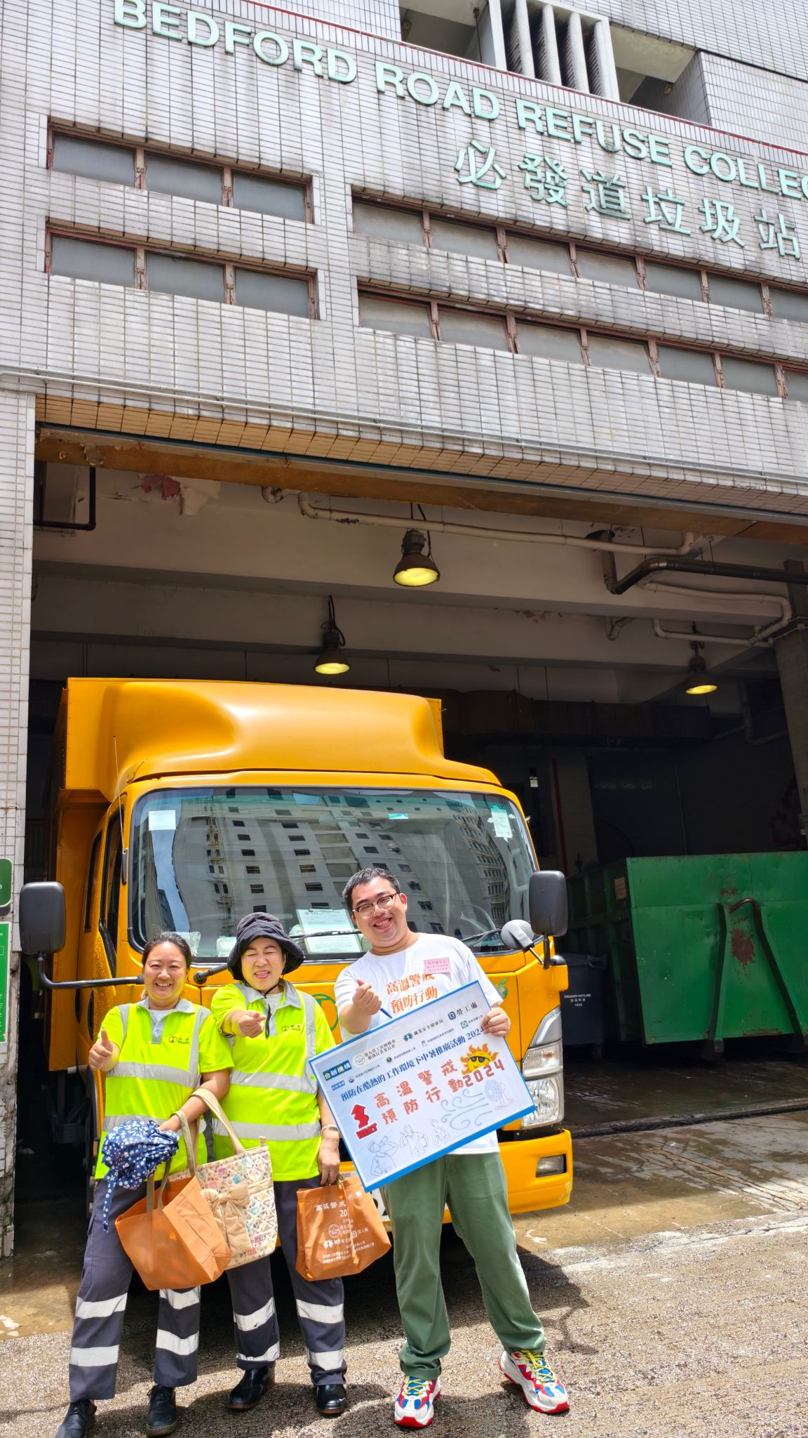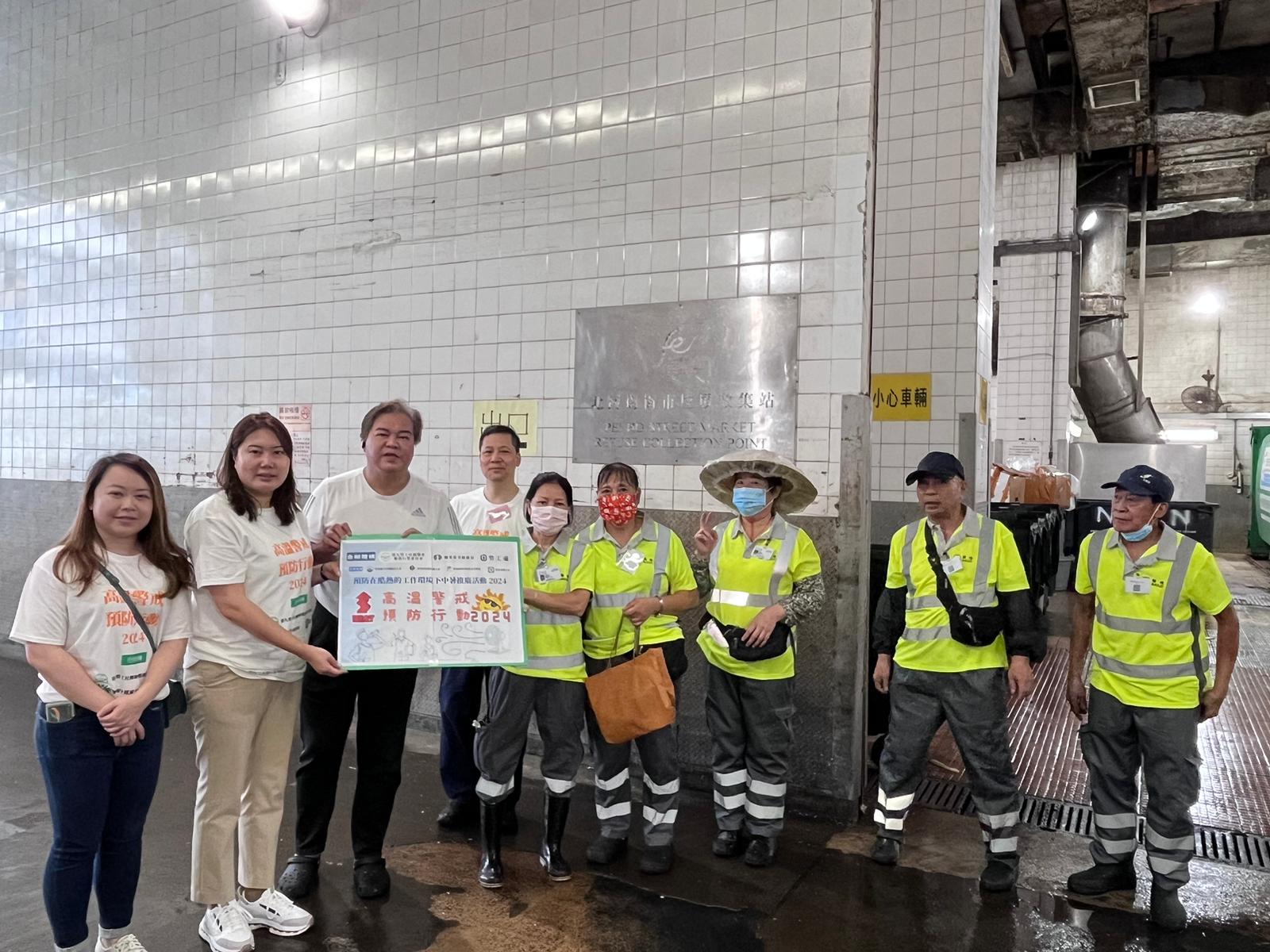 當天,勞聯服務行業委員會更䢫即進行了「高溫警戒預防行動」,由多位議員及工會代表、社區幹事帶領義工隊,前往服務行業前線工作場所,探訪前線工友,並派發由職業安全健康局及勞工處贊助的『職安防暑包』,以宣傳推廣酷熱及惡劣天氣下的工作安全訊息。