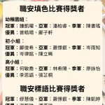 職安百分百、健康職場一起GO」職安填色比賽結果: 高小組:冠軍:林芊月 亞軍:劉芯 季軍:吳泳妍 優異:彭雪睿 …